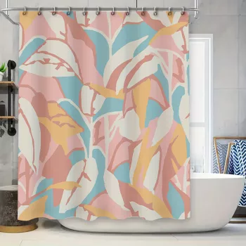 Colorful Leaf Shower Curtain – Modern Waterproof Bathroom Decor with Hooks